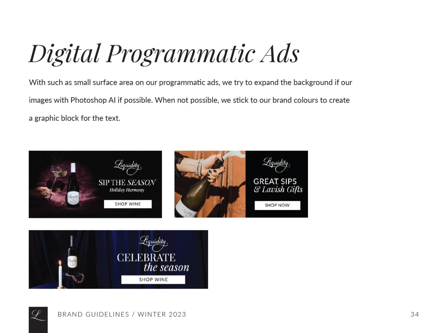 Refreshing a brand from simple and disconnected to bold and refined means carefully rethinking its visuals and messaging. Utilizing the framework from an external agency, I was able to refresh the brand look of Liquidity Wines creating a cohesive and robust brand direction. Using colours, rich textures, and modern graphics, I was able to showcase a lively personality and sleek identity that reflects the true heart of Liquidity Wines. Bold, refined, and sophisticated.
